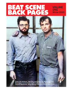 A new Beat Scene publication – out of subscription and digital only issue BEAT SCENE BACK PAGES – with material from the Beat Scene archives over the past decade or three. 80 pages. Burroughs, Huncke, Cassady, Ginsberg, Bukowski, Kerouac, Snyder, Pommy Vega and more. Copies are £7 UK. If interested email kevbeatscene@gmail.com
